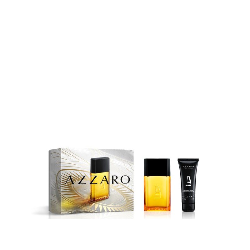 Ce coffret contient l'eau de toilette Azzaro pour Homme en vaporisateur 100 ml et en cadeau le shampooing douche Azzaro pour Homme en 75 ml.