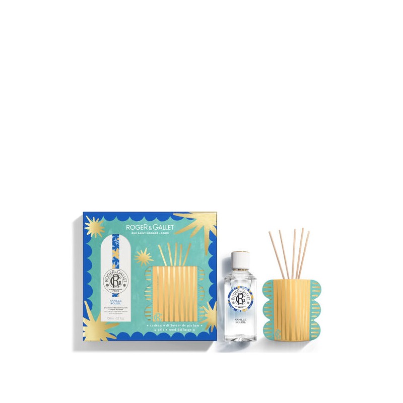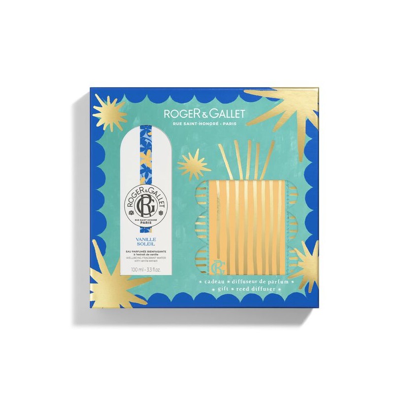 Pour les fêtes, Roger&Gallet vous ouvre les portes de son Grand Bazar de Noël, un univers sensoriel éclatant, imaginé par l’artiste Eclette. Offrez un moment d’évasion avec le coffret Vanille Soleil, une fragrance chaleureuse à la vanille de Madagascar, sublimée par des notes salines et de fleurs blanches solaires. À savourer en parfum et en diffuseur, pour envelopper corps et intérieur d’une atmosphère rayonnante et « feel good ».